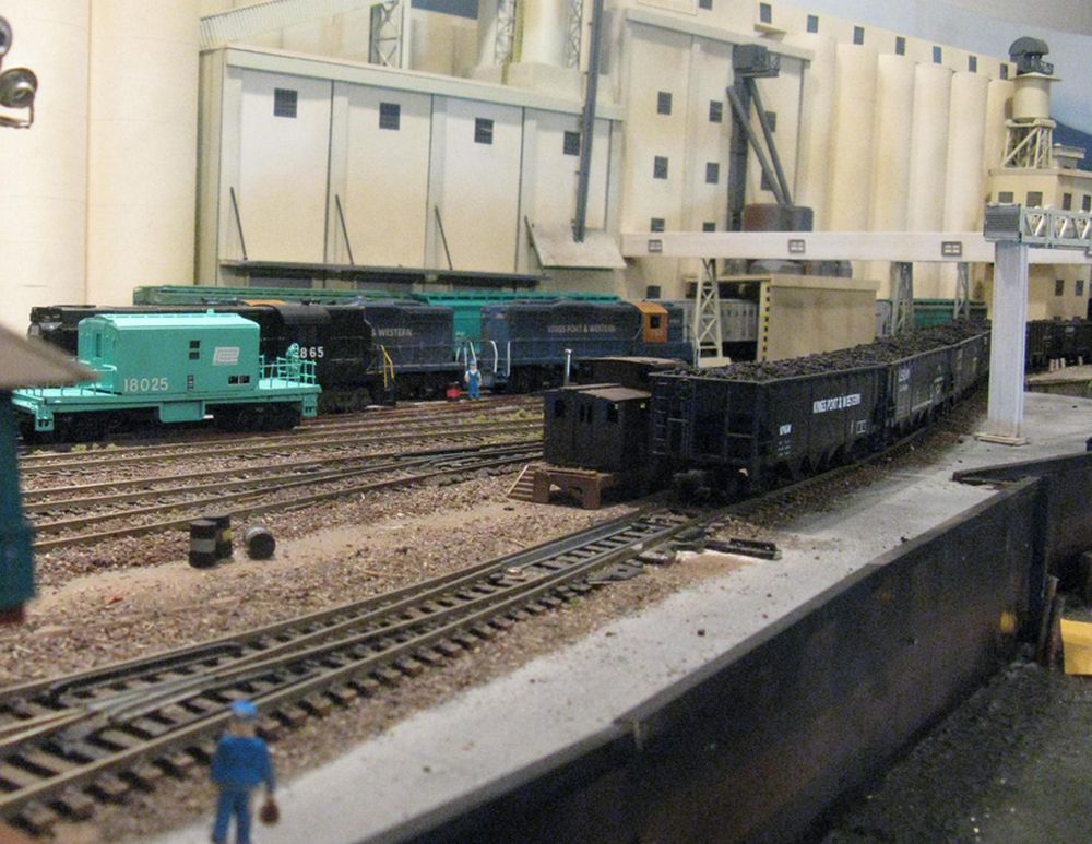 The main line now clear, KP&W Extra 769 takes the main so it can enter West Mill Yard and set out its coal hoppers.