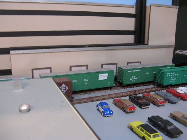 Meanwhile, over at West Mill, cars from the A.P.R.R. going West on the KP&W include three Penn Central RBLs loaded with crates for IBM in Binghamton...